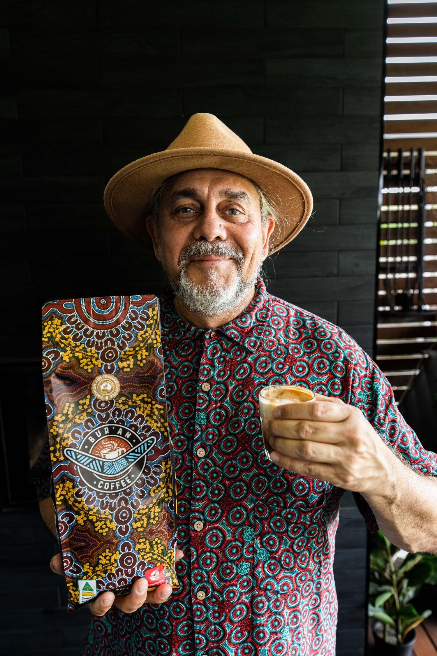 Bur'an Coffee is proudly presented by Cultural Ambassador, Founder of Bur'an Australia Pty Ltd, multi-awardee, and renowned Senior Aboriginal Artist John Smith Gumbula, Son of the WakkaWakka | GurangGurang indigenous people of Queensland, and adopted Son of the traditional Yolngu families of Gali'win'ku, Elcho Island, Northern Territory, Australia. Bur'an Coffee is 100% Queensland, Australian grown, harvested and roasted. Bur'an Coffee is Sustainable, Cultural, and Ethical fairtrade coffee. Our long-term focus is to create and produce outstanding quality coffee for the local and international markets with ingredients that celebrates the indigenous cultural heritage of Australia, and our 60'000 year connection to country.